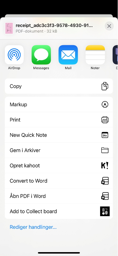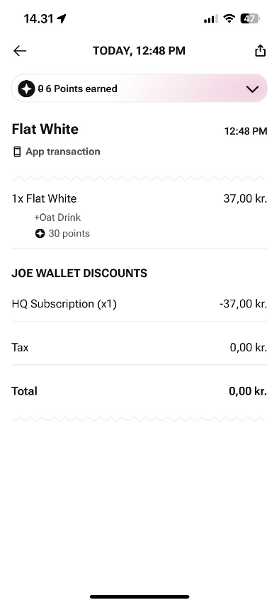Go to the Home page in the app → tap the small profile icon in the top left corner → select Order History → find the order you’d like the receipt for and tap See details → tap the Export button in the top right corner → download the receipt.